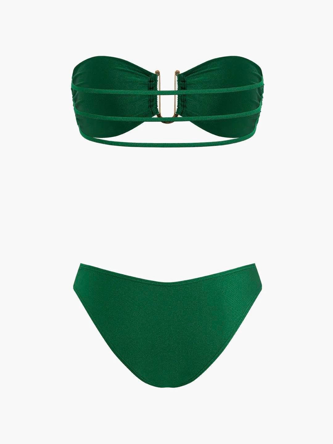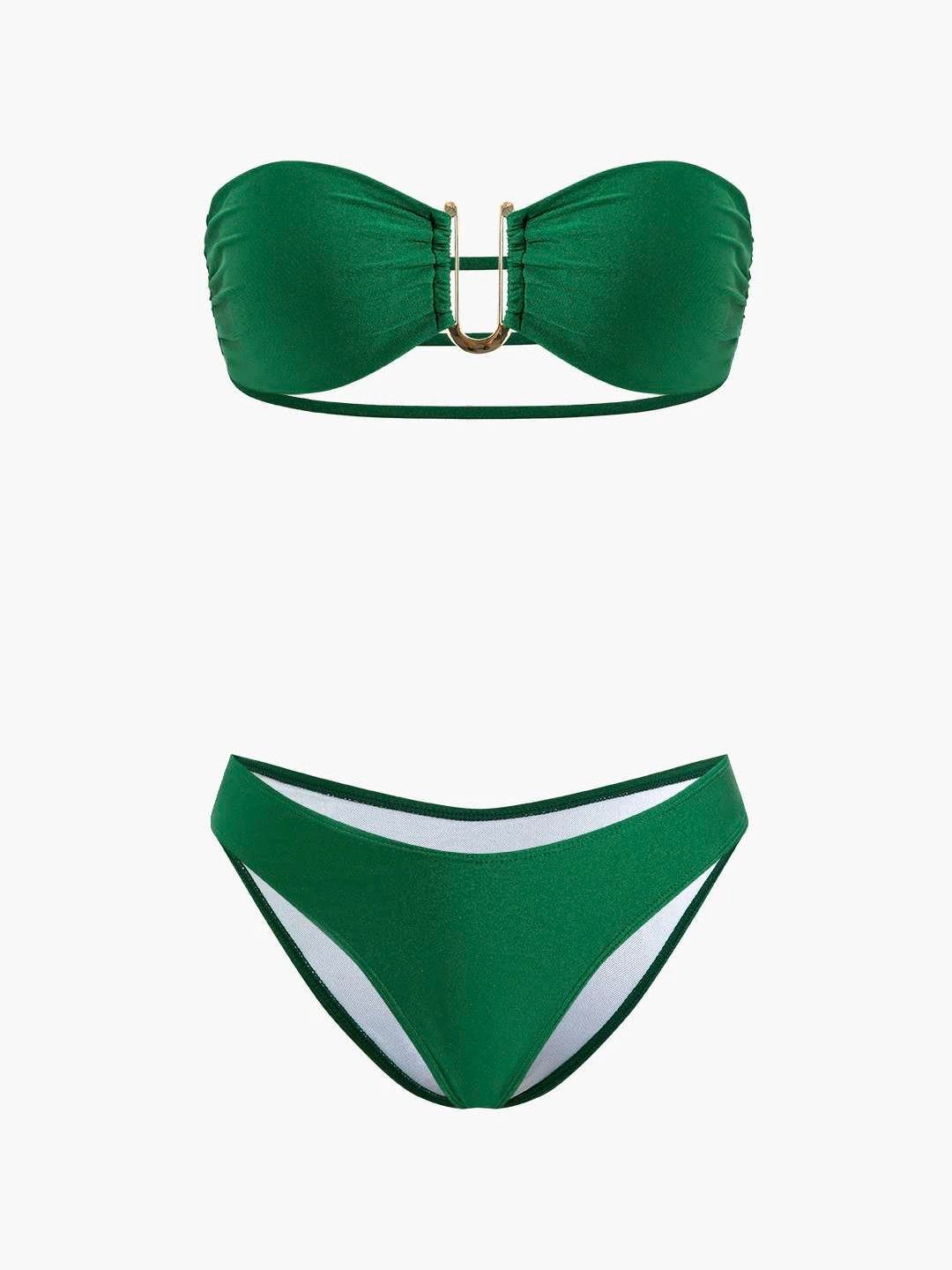 Orta yüksek bel, Göğüs ortasında Gold demir detaylı bikini takımı.